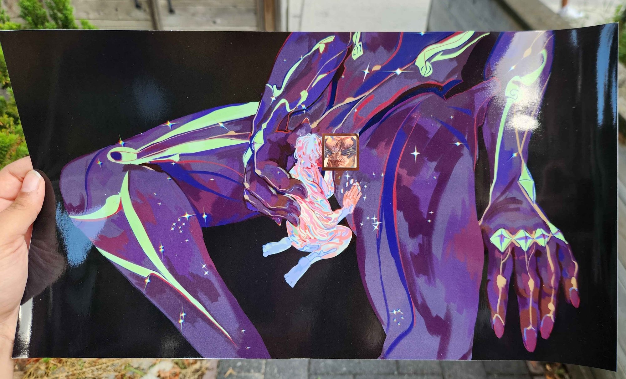 + one small (2" x 2") sticker (pic 1, the size of the sticker over the larger print is not representative of the actual sticker size)